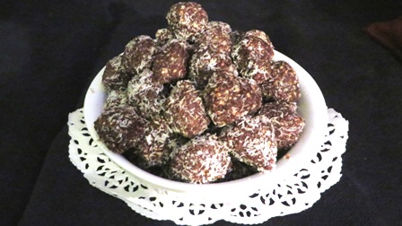 Kugeln aus dem Teig formen. In Kokosflocken oder